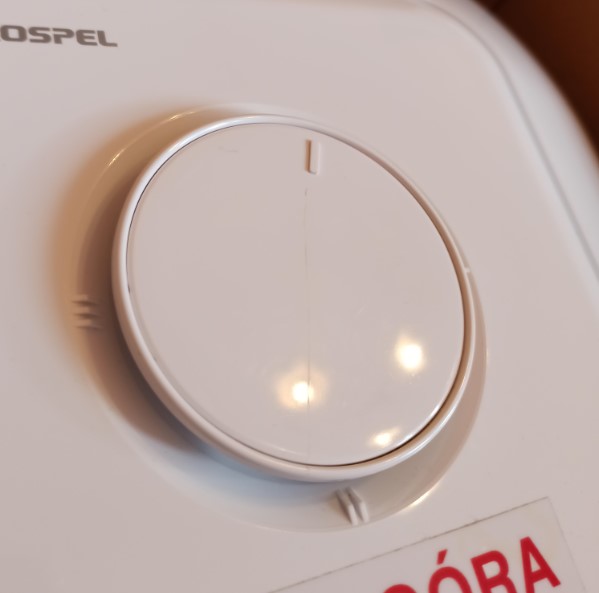 Podgrzewacz jest NOWY. Nie używany. Posiada rysę na pokrętle do regulacji temperatury wody. Zdjęcia poniżej: