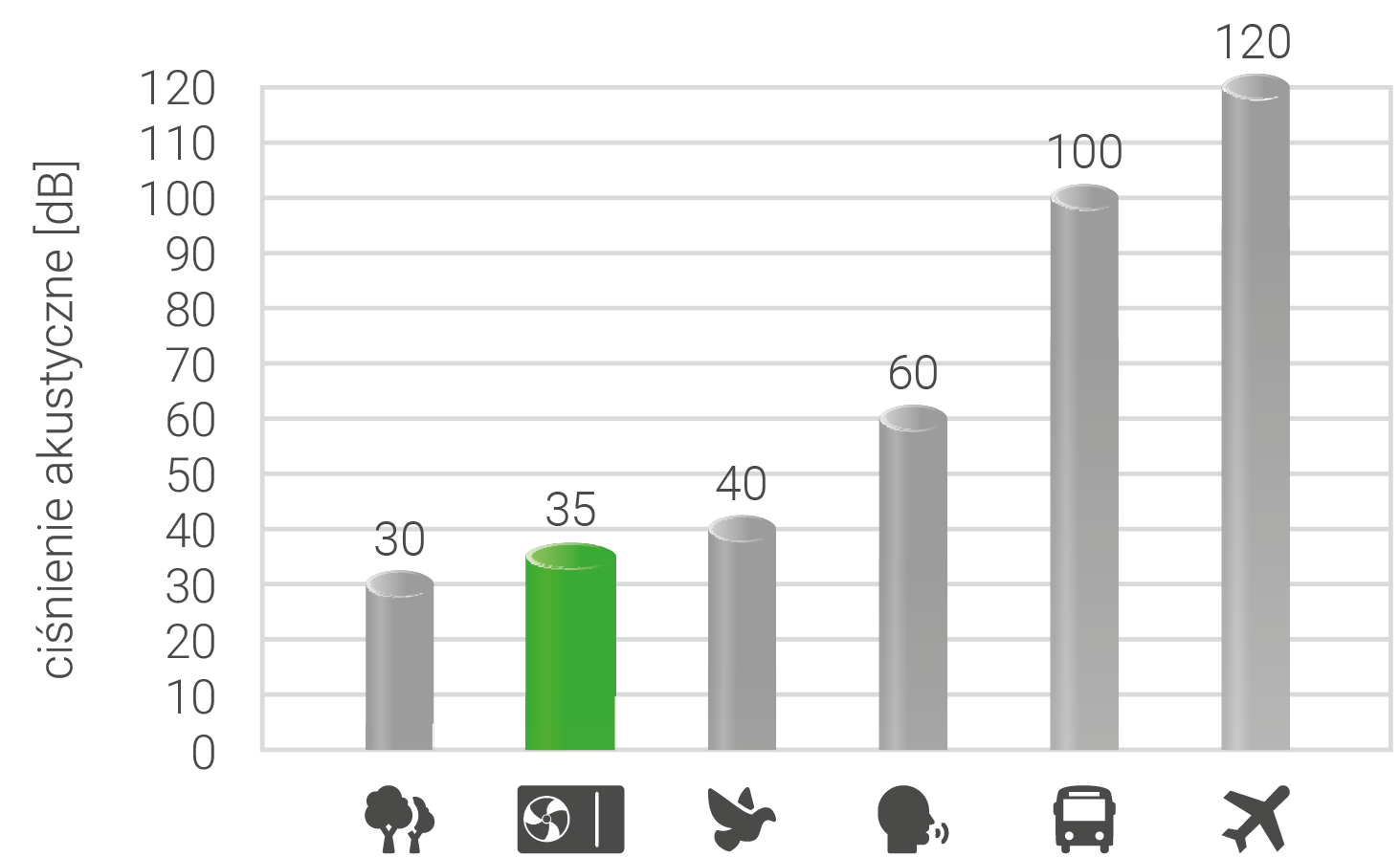 - Ciśnienie akustyczne tylko 35 dB. – Prima 4GT - w odległości 3m.
