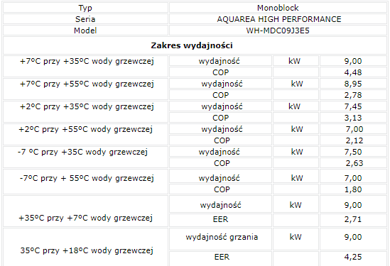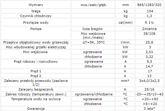 - Wysoka wydajność grzewcza i chłodnicza, nawet w niskich temperaturach otoczenia