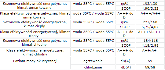 - Klasa efektywności energetycznej A+++ (temperatura wody na wylocie: 35°C w klimacie umiarkowanym)