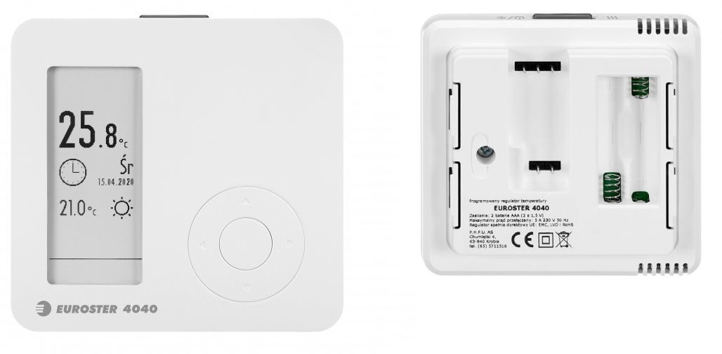 Euroster 4040 to innowacyjny, elektroniczny regulator temperatury wyposażony w energooszczędny, podświetlany wyświetlacz e-paper, który zapewnia doskonałą czytelność z każdego kąta widzenia. Regulator umożliwia precyzyjne sterowanie temperaturą w pomieszczeniach mieszkalnych i użytkowych, dostosowując pracę systemu grzewczego lub klimatyzacyjnego do stylu życia mieszkańców. Dzięki rozbudowanemu harmonogramowi i wielu funkcjom użytkowym, Euroster 4040 łączy nowoczesne wzornictwo z wysoką funkcjonalnością.