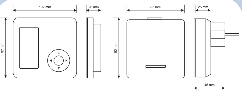 Regulator (szer. / wys. / gł.): 102 × 97 × 26 mm
