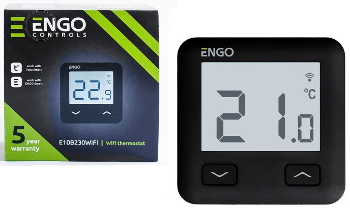 Regulator temperatury E10B230WIFI to urządzenie przewodowe wyposażone w moduł Wi-Fi. Umożliwia ono wygodne sterowanie wszystkimi rodzajami ogrzewania, w tym także podłogowym. Współpracuje z aplikacją Engo Smart/Tuya Smart, które pozwalają na zdalne sterowanie temperaturą w pomieszczeniach.