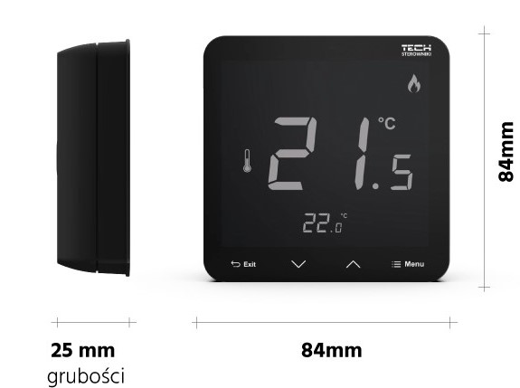 Sterownik R-8S PLUS pokojowy, bezprzewodowy z pomiarem wilgotności czarny