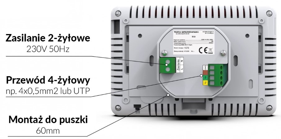 Przewodowy panel kontrolny sterowników ogrzewania przeznaczony jest do montażu podtynkowego w puszce elektrycznej. Warto pamiętać, że błędne podłączenie przewodów może doprowadzić do uszkodzenia sterownika, dlatego warto, aby instalację przeprowadziła osoba z odpowiednimi kwalifikacjami. Sterownik należy zarejestrować do listwy L-9 R. W tym celu na początku trzeba wybrać opcję rejestracji na urządzeniu M-9 R. Do regulatora można zarejestrować aż 4 listwy L-9 R. Rejestracji należy dokonywać po kolei, ponieważ równoczesna rejestracja w kilku strefach się nie powiedzie.