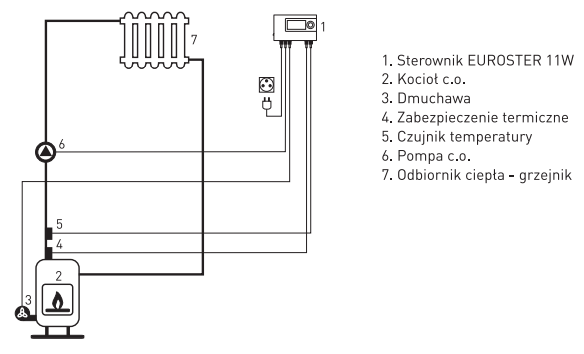 Euroster 11W to zaawansowany, programowalny sterownik zaprojektowany specjalnie do współpracy z nawiewowymi kotłami c.o. na miał i węgiel. Steruje zarówno dmuchawą, jak i pompą obiegową c.o., zapewniając optymalny i ekonomiczny proces spalania. Reguluje ilość powietrza doprowadzanego do paleniska na podstawie aktualnej temperatury w kotle, a tym samym dba o stabilną pracę całego systemu grzewczego.