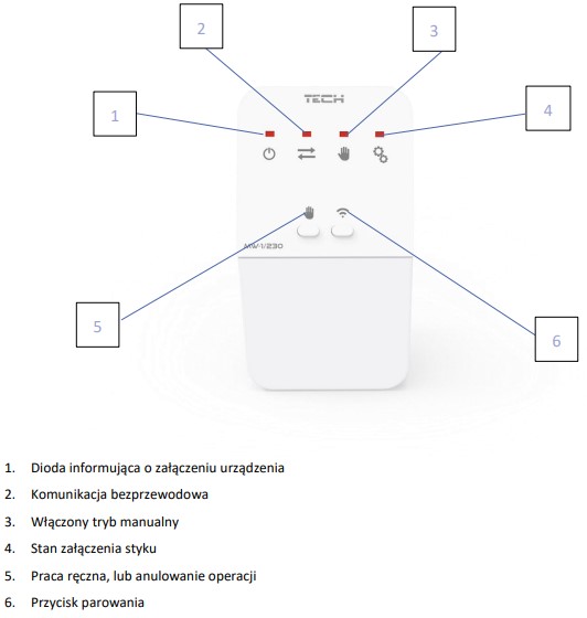 MW-1/230V to bezprzewodowe urządzenie, którego zadaniem jest załączenie/wyłączenie styku napięciowego w momencie otrzymania komunikatu od sterownika głównego. W zależności od sterownika głównego moduł MW-1/230V może np. załączać kocioł, pompę, siłowniki zaworów.