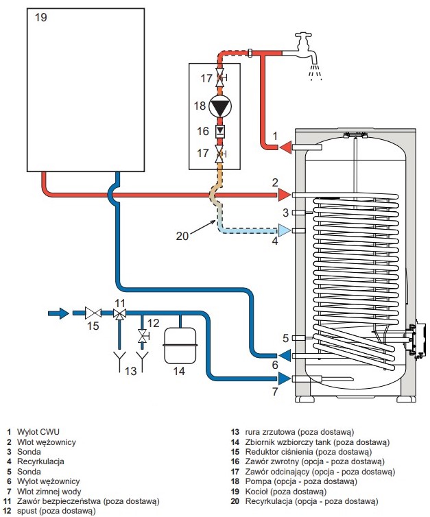 ZASOBNIK CIEPŁEJ WODY UŻYTKOWEJ Z 1 WĘZOWNICA DO POMP CIEPŁA