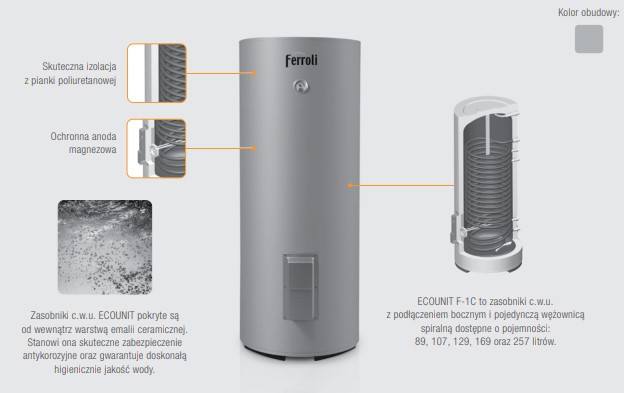 FERROLI ECOUNIT F 300-1C – poj. 257 l (pow. wężownicy 2,57 m²)