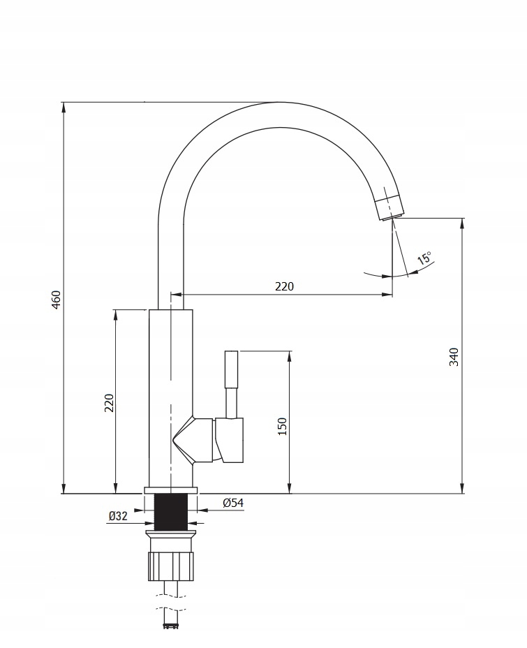 ✔️Zasięg wylewki od środka baterii: 220 mm