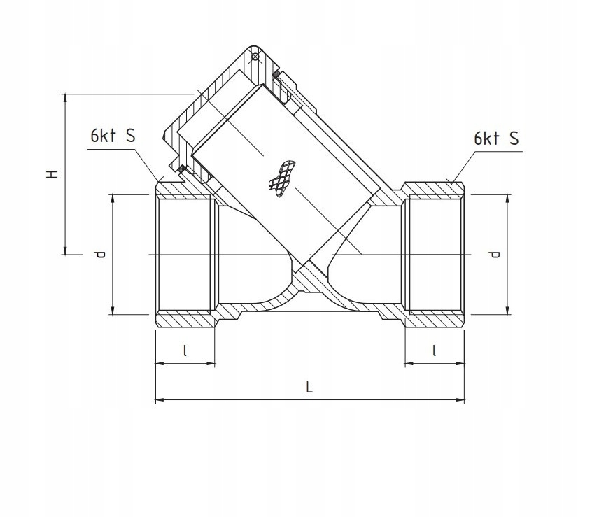 Filtr mosiężny skośny do wody PHA-060 3/4'' ( 03-060-0200-000)