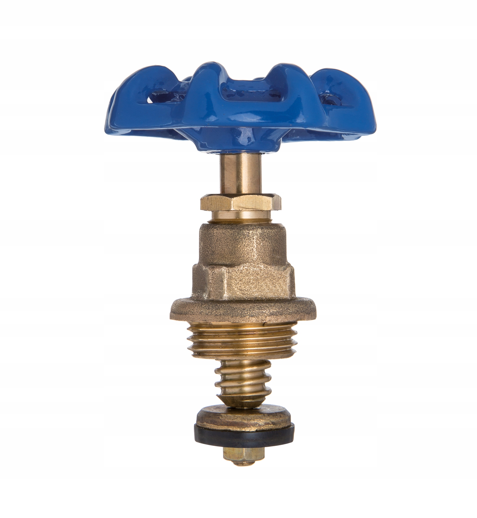 Wysokiej jakości głowica mosiężna grzybkowa przeznaczona do montażu w zaworze żeliwnym przelotowym oraz kranie ogrodowym żeliwnym czerpalnym. Bardzo wytrzymała konstrukcja.