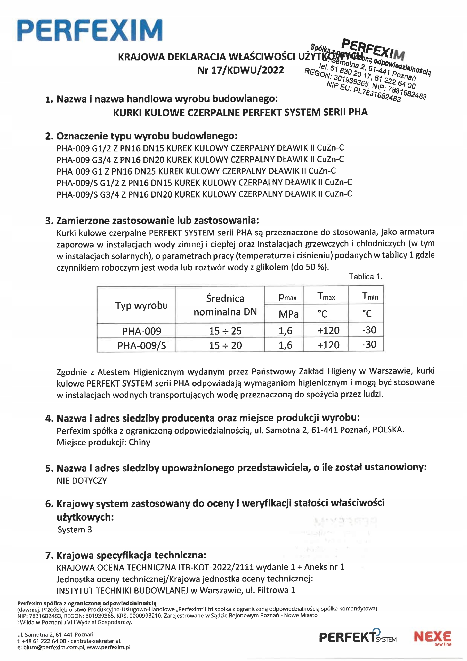 Zawory kulowe PERFEKT SYSTEM przeznaczone są do otwierania i zamykania przepływu w instalacjach: