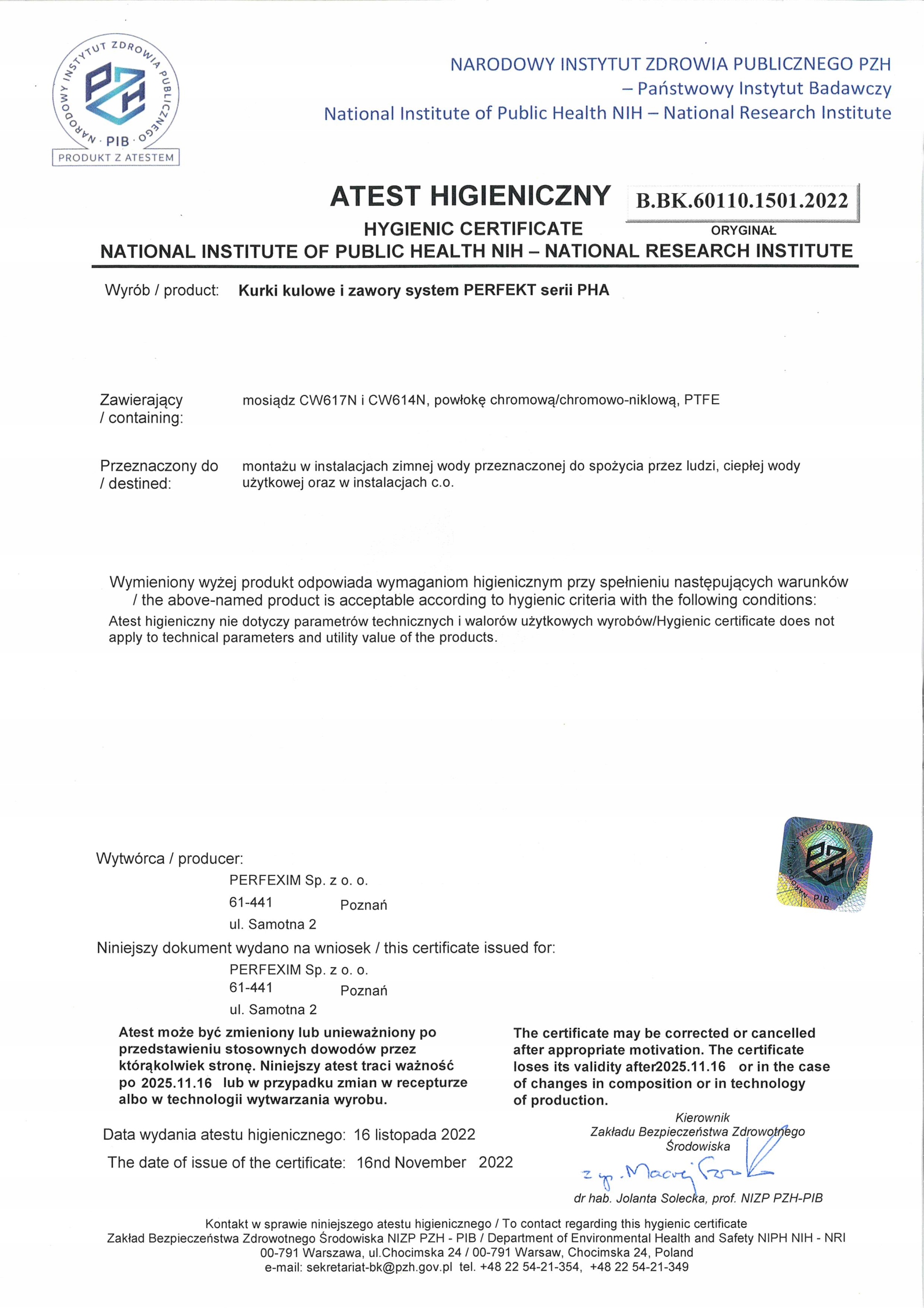 Produkt posiada ATEST PAŃSTWOWEGO ZAKŁADU HIGIENY!