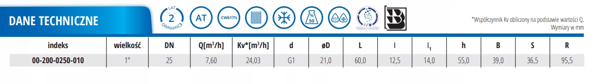 Zawór przeznaczony jest do pracy przy maksymalnym ciśnieniu roboczym wynoszącym 16 bar. Maksymalna temperatura robocza wynosi 120°C, minimalna - 30°C