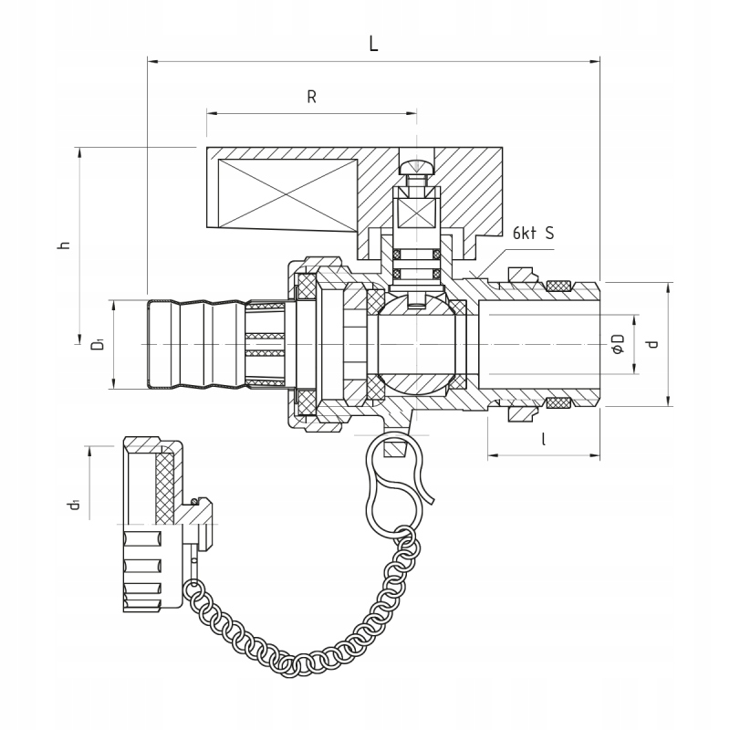 - uszczelka kuli, uszczelka przyłącza - PTFE (teflon)
