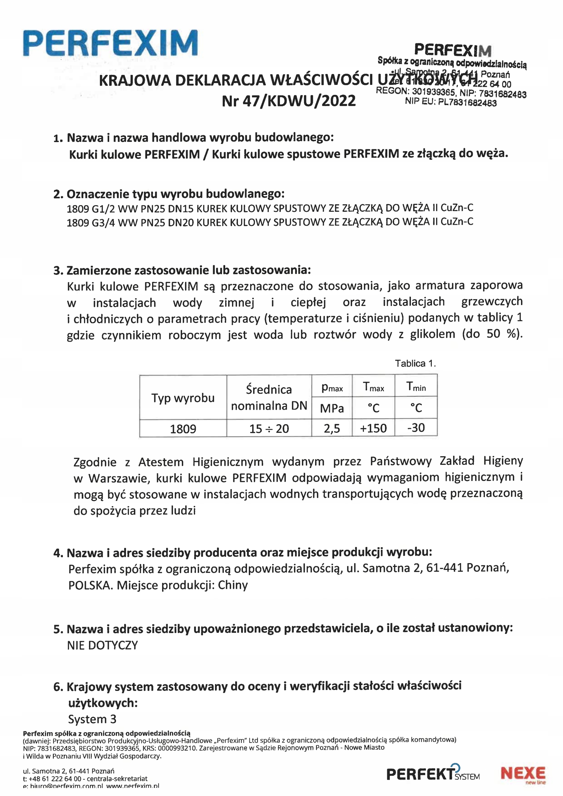 PERFEXIM KUREK KULOWY SPUSTOWY 3/4 SPUSTOWY PN 10