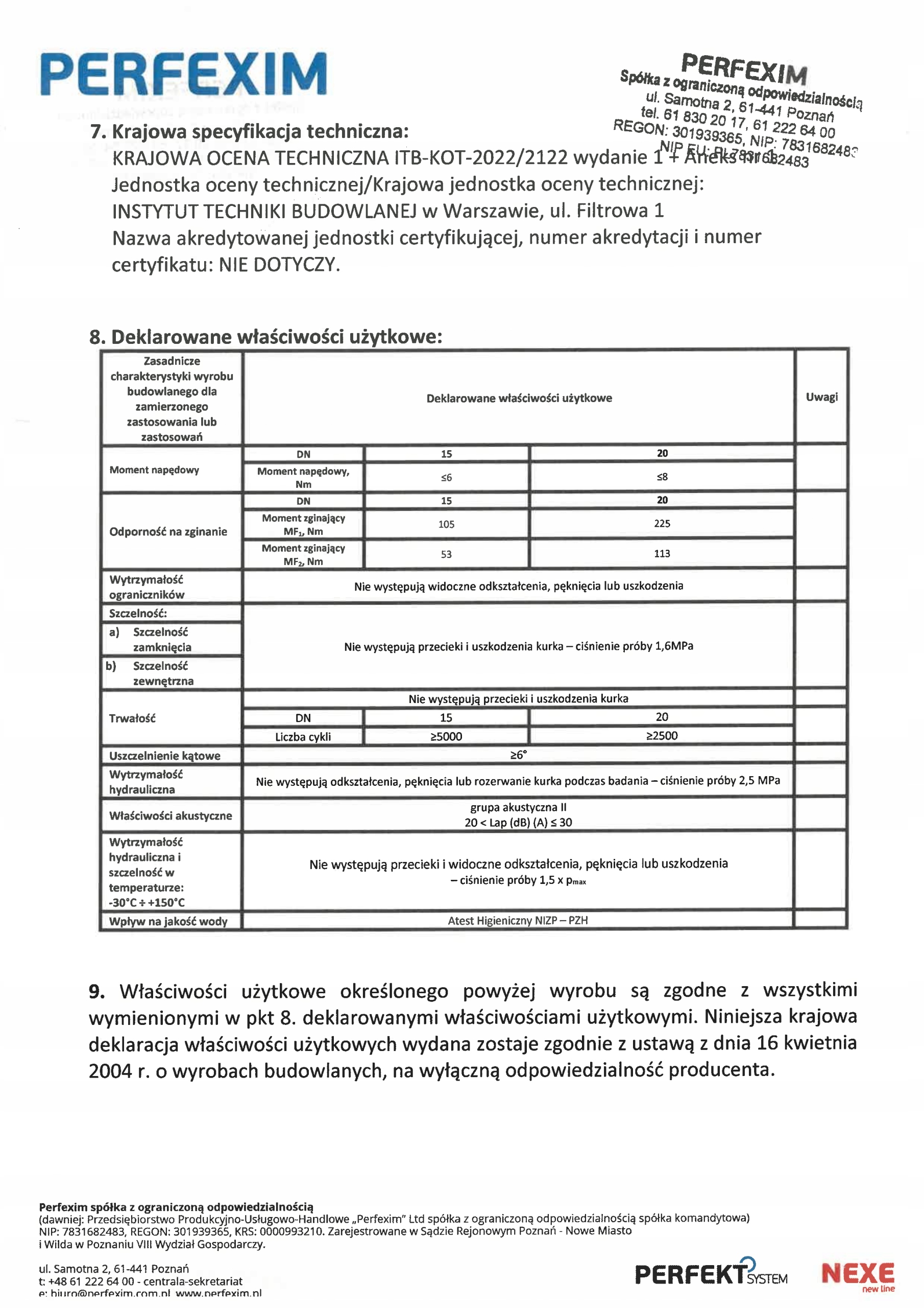 posiada atest do kontaktu z wodą pitną