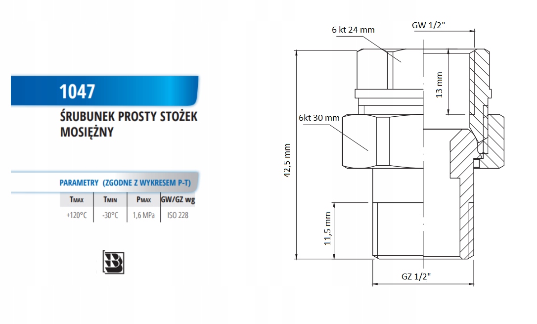 MOSIĘŻNY ŚRUBUNEK 1/2" PROSTY USZCZELNIANY NA STOŻEK - PERFEXIM
