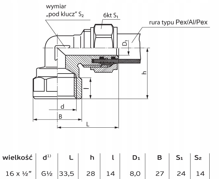Kolano skręcane 16xG1/2 GW pex 10 sztuk nakrętne