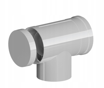Kolano koncentryczne PP-AL z inspekcją 60/100. Można stosować w szachcie kominowym jak również w poziomym wyprowadzeniu przez ścianę. Łatwy dostęp do rewizji dzięki odkręcanemu otworowi.