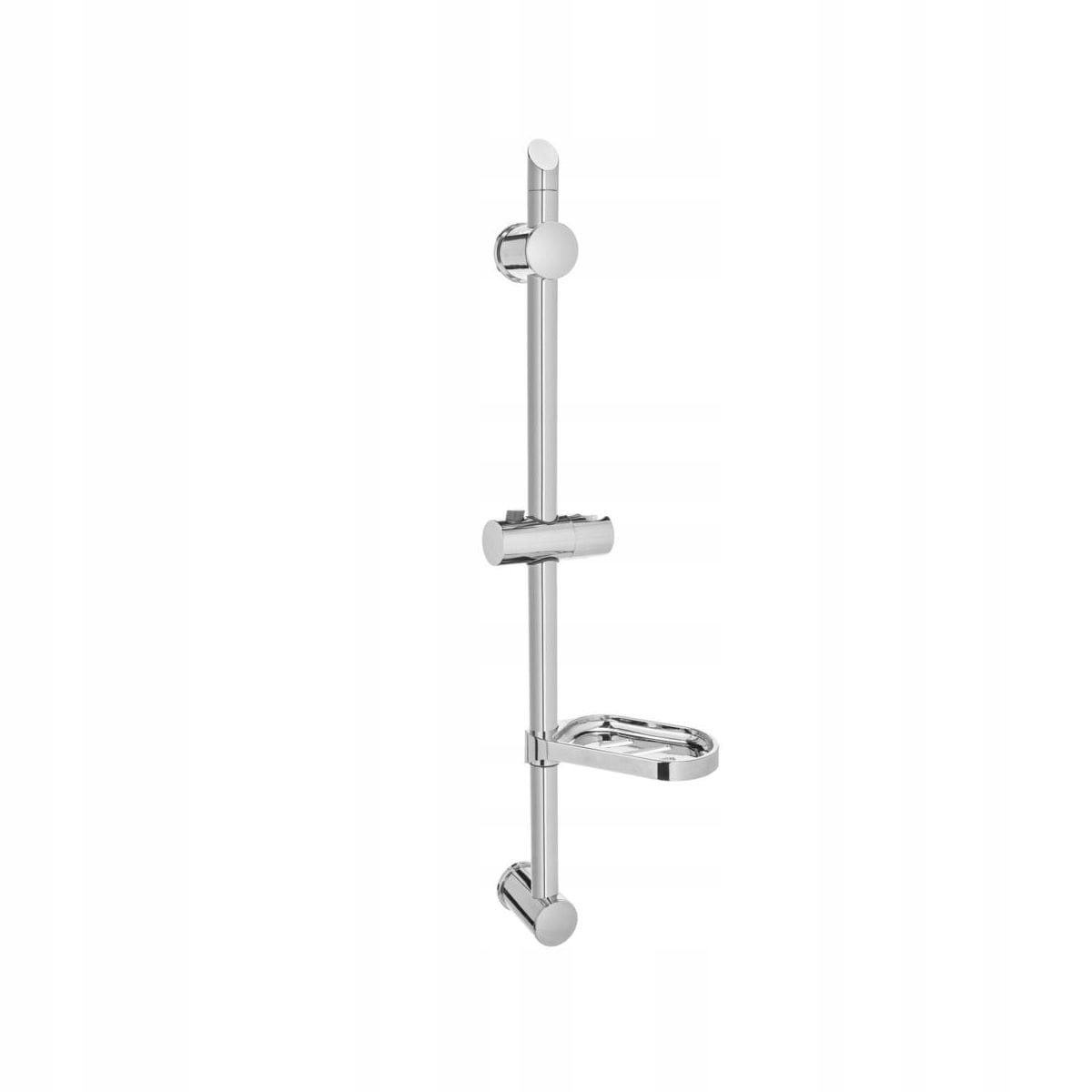 Klasyczny drążek natryskowy. Posiada regulowane uchwyty montażowe, co pozwala dopasować drążek do wcześniej nawierconych otworów w ścianie. Regulowany uchwyt przesuwny poprawia komfort użytkowania. W komplecie z mydelniczką.