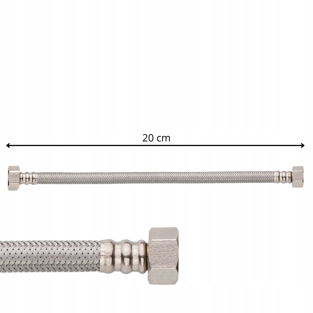 WĘŻYK WĄŻ PRZYŁĄCZENIOWY STALOWY GW1/2"x3/8'"GW 20cm W OPLOCIE INOX SOLIDNY INVENA WS-02-020-G