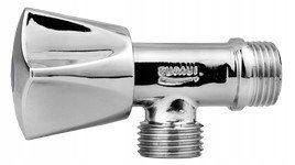 Zastosowanie: Zawór kątowy grzybkowy, do podłączenia dolnopłuka, pralki lub baterii. Rozeta w komplecie. -maksymalna temperatura robocza: 80 °C; -maksymalne ciśnienie robocze: 1,0 MPa Cechy dodatkowe: podwyższona wytrzymałość łatwość montażu